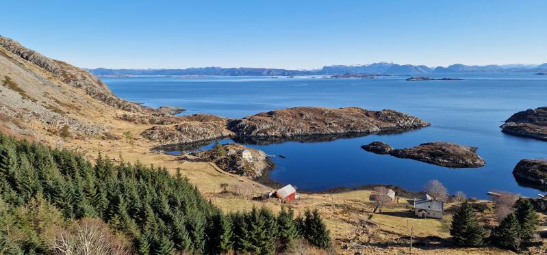Siden dette var i slutten av mars, var det ingen vits å tenke overnatting i høyden. Snøen var langt i fra å forsvinne, så jeg rettet heller blikket mot kystnære strøk. Haugland ligger i Fjaler Kommune, som igjen ligger i Sogn og Fjordane Fylke (eller Vestland fylke, som det idag heter). Her var det med andre ord massevis av muligheter for å finne flotte plasser å få til en teltovernatting!