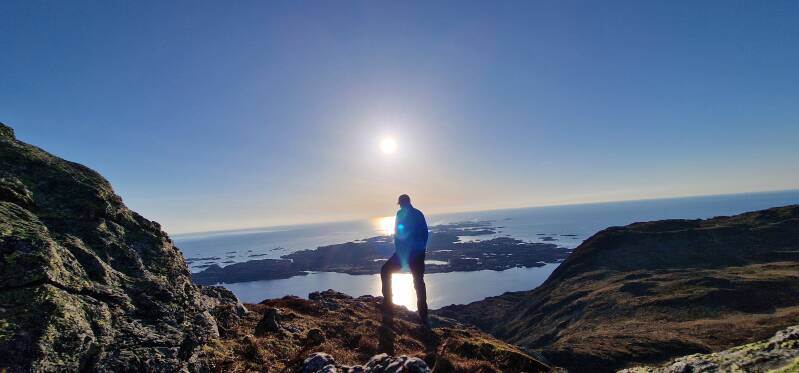 Det er lite som slår følelsen av å sitte på et lite berg ute i havet, spise litt mat og se at solen går ned. Jeg tok naturligvis en del bilder, men mest ble jeg sittende å se. Helt alene. Det ga tid til refleksjon over situasjonen jeg har vært i siden 2021. Det å være utenfor arbeidslivet, savnet av kollegaer og faglige utfordringer i hverdagen. Samtidig en enorm takknemlighet overfor mine nærmeste. Det har ofte vært tunge tider, men støtten fra min kone Brit Elin har vært formidabel.