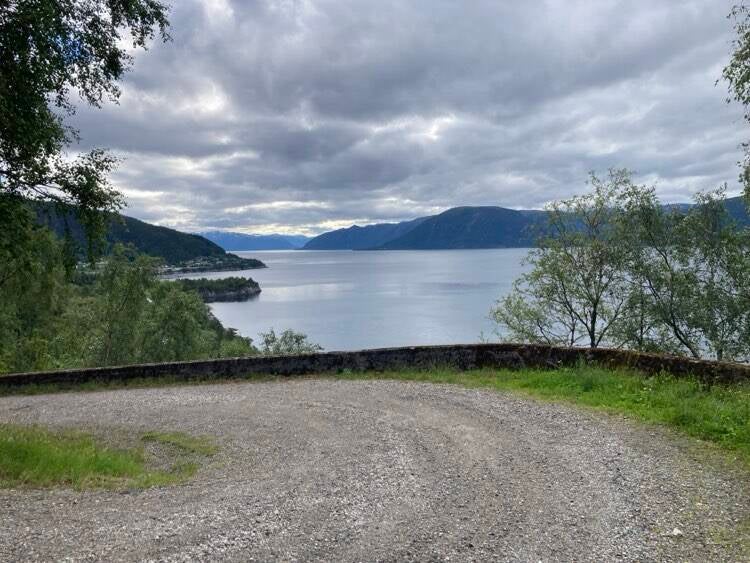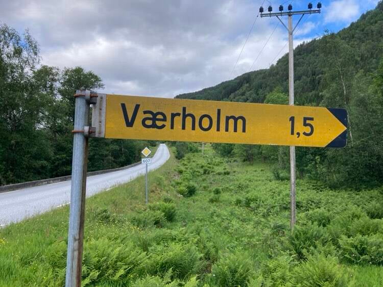Turen starter fra hytten og bort langs fylkesvei 607 mot Lavik, så tar vi av der det står "Værholm 1,5".