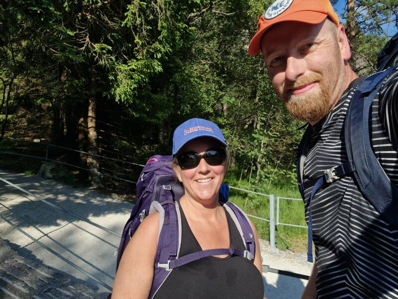 Vi så for oss å gå helt opp til platået, og så gå litt tilbake igjen for å finne en fin plass. Helst en plass med utsikt inn Lysefjorden.