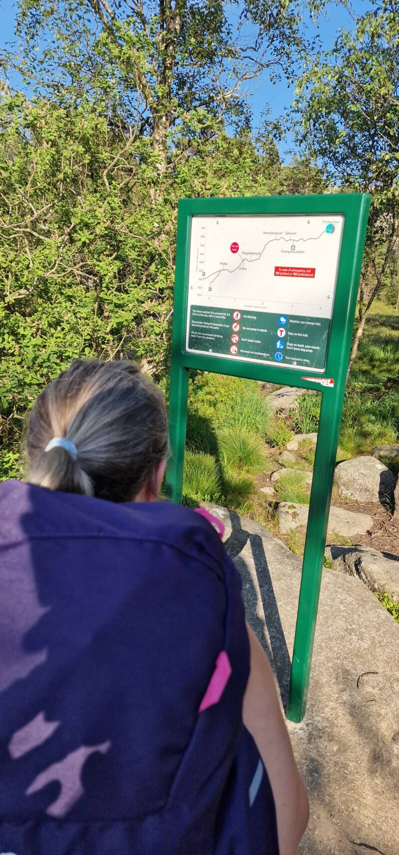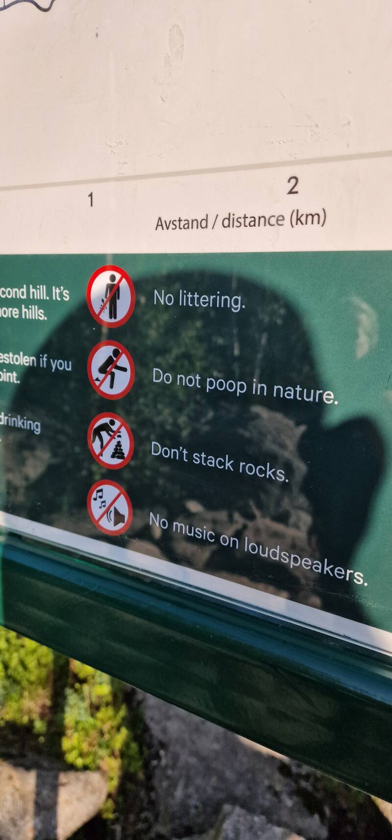 Det som hadde kommet nytt siden vi var her sist var bla. nye skilter og såkalte "sherpa-trapper" på enkelte partier. Skiltene var jo litt morsomme for oss lokale, men enkelte deler av informasjonen er helt på sin plass på Preikestolen.