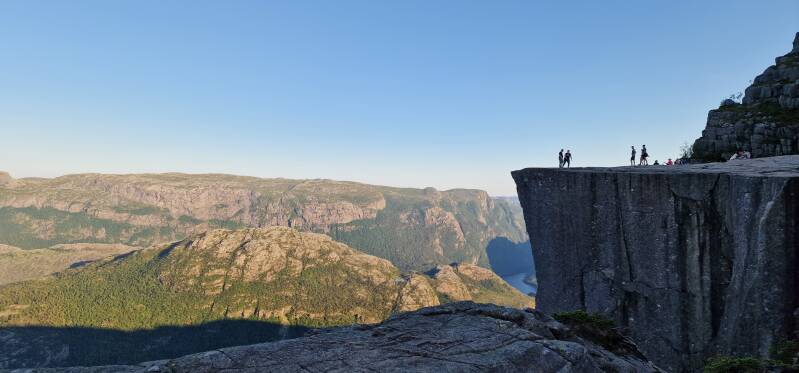 Da vi kom opp til selve platået, så var det ikke så veldig mye folk. Men allikevel kø ut på spissen, for å få bilde. Jeg forsøkte meg på å snike i en slags kø, men fant ut at jeg ikke gadd. Jeg har vært der oppe så mange ganger at jeg var mer opptatt av å gå ned igjen og finne en god plass for natten.