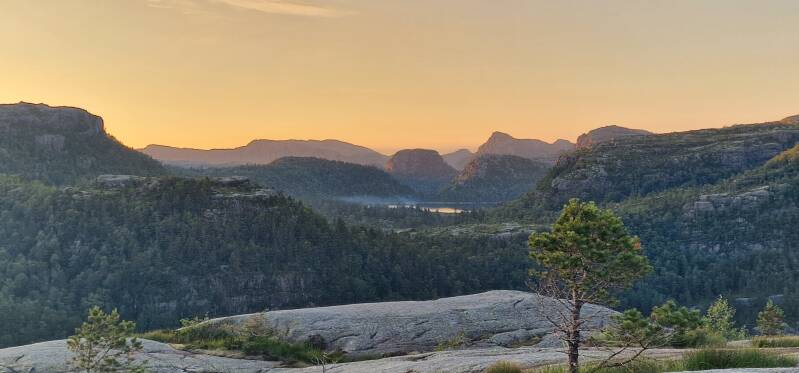Kl. 03.30 våknet jeg av turister som var på vei opp til Preikestolen! De skulle tydeligvis få med seg soloppgangen, og var høye på livet - og pratet høyt seg imellom på sin vei mot Norges mest ikoniske naturattraksjon. Der jeg lå i min varme sovepose i vinden, så var jeg litt overrasket over hvor tidlig de var ute. Vi lå ikke så langt fra Preikestolen, så jeg lå der og regnet ut at de måtte ha begynt å gå i 02-tiden. Ivrige folk med andre ord. Og smått irriterende for meg som ikke klarer sove videre hvis jeg vekkes en gang etter 03.00.