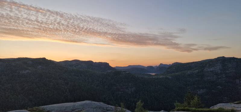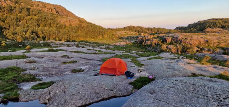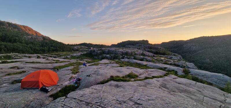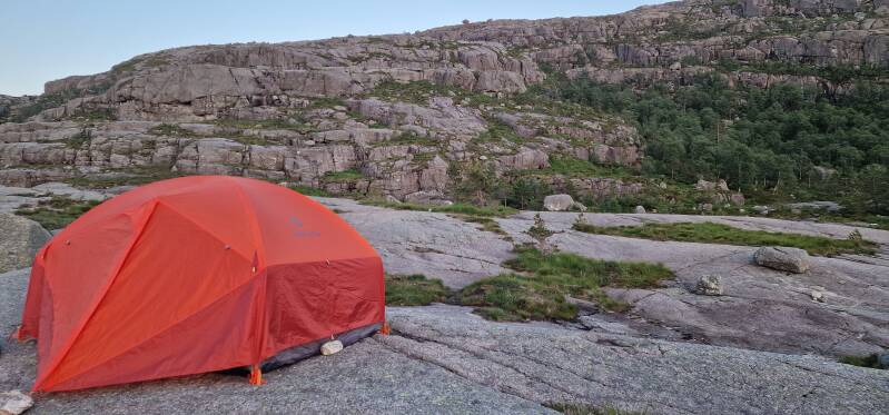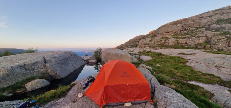 Vel, vi var litt i beit for en fin plass å sove i juni, og litt tilfeldig kom vi til at Preikestolen kunne være en ok plass å ta en natt.