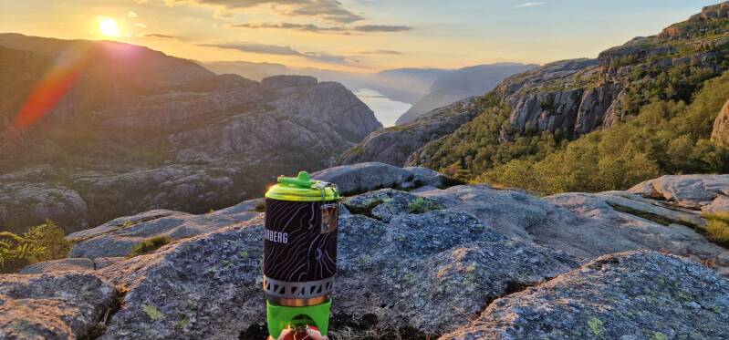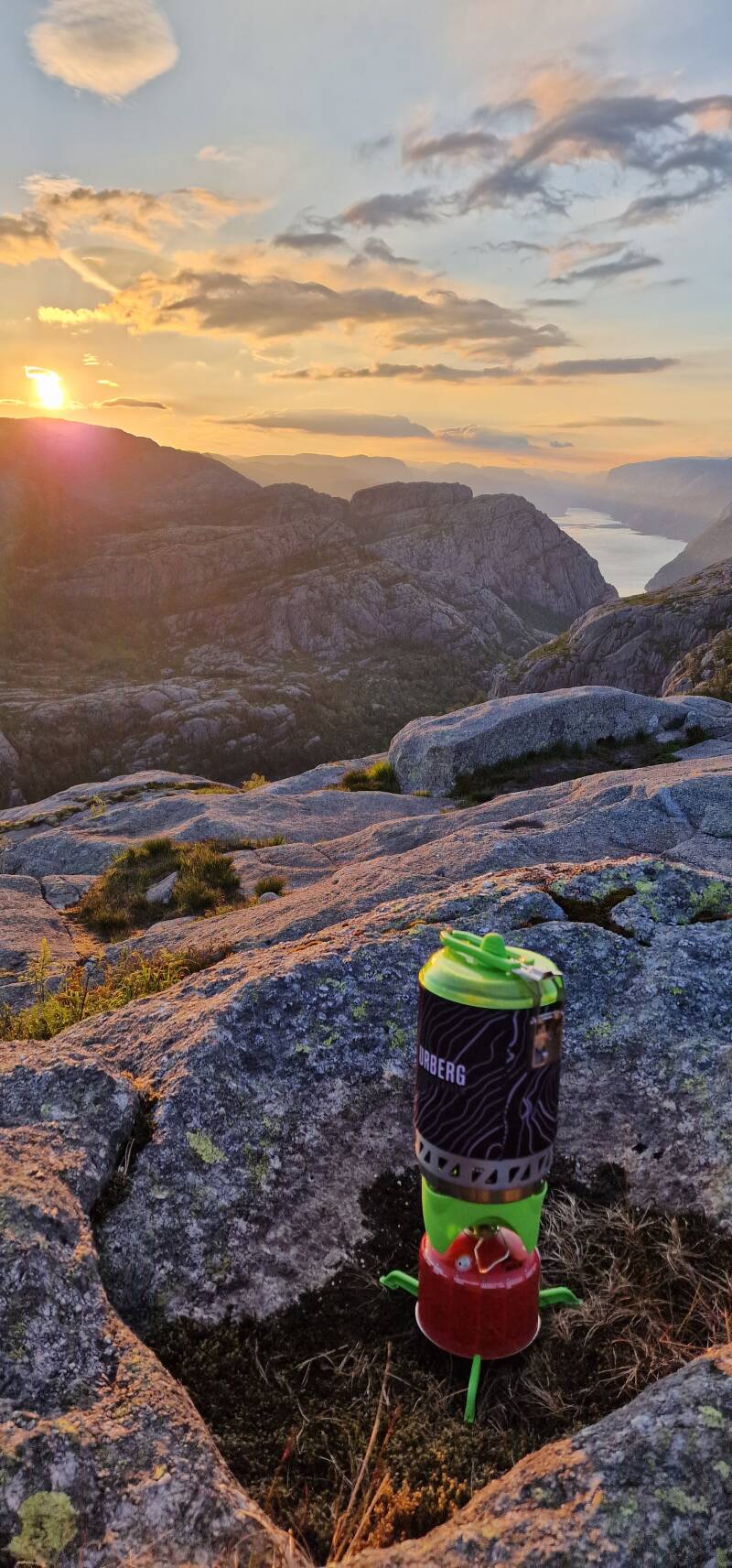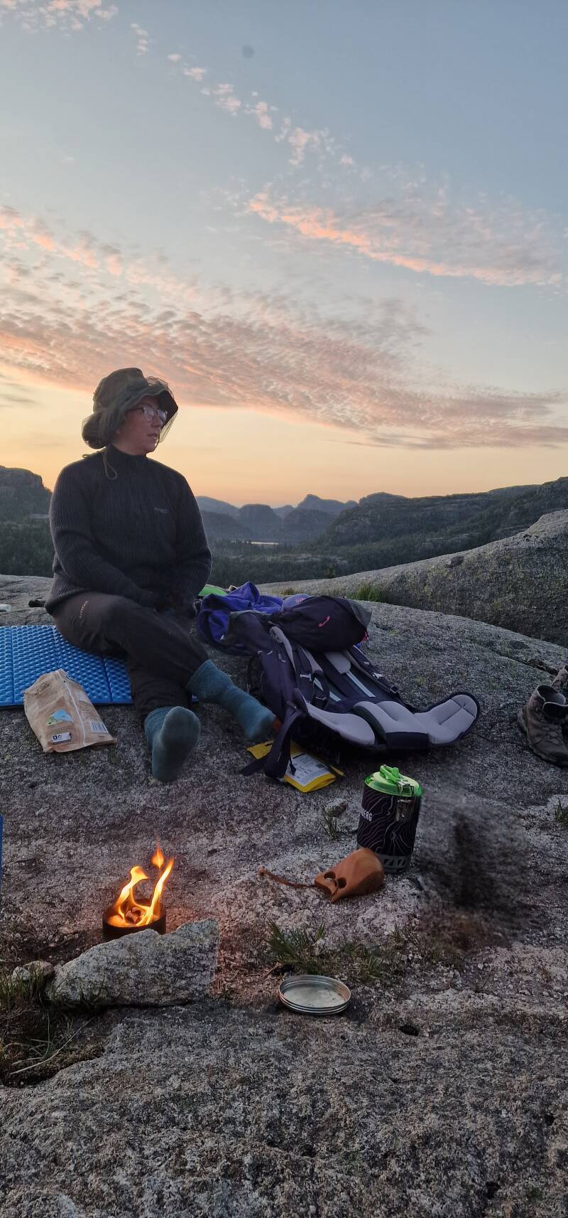 Jeg gikk litt unna teltet, siden Beit Elin fortsatt sov. Jeg fant frem kokeren. Laget meg en kaffe og nøyt utsikten.