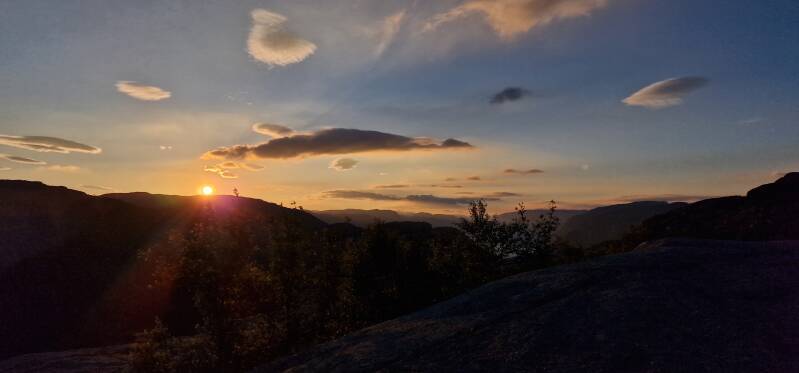 Etter å ha fått opp teltet kjapt, så var det egentlig bare å slappe av og nyte utsikten - og solens nedgang.