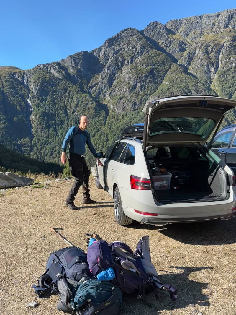 Etter å ha plassert sekker i bagasjen og fått våte sko i takboksen, var det godt å sette seg inn i bilen og kjøre ned på E39. Nå gikk veien videre nordover, nærmere bestemt Åndalsnes. Vi skulle kjøre via Trollstigen, som for én gangs skyld var åpen (veien har vært stengt i lengre perioder pga. ras). Åndalsnes er et kjempefint utgangspunkt for massevis av fjellturer, og det kommer det mer om i neste turrapport.