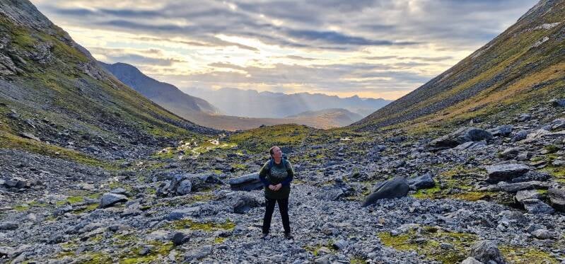 Vi var ikke veldig tidlig oppe denne morgenen, slik vi pleier være når vi har en dagstur foran oss. Jeg tror kroppene var ganske kjørt etter flere dagsturer etter hverandre, så derfor tillot vi oss å sove litt lenger enn vanlig. Vi kjørte fra Ålesund kort tid etter det ble dagslys, og fikk en fin tur utover mot Grytalisæter. Dette var et nytt område for oss å gå i, så vi var begge spente på hvordan det ville bli å gå en ny langtur etter flere dager med mange kilometer i beina.