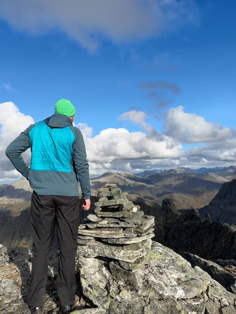 Da vi endelig var oppe på toppen av Lauparen, var det ett stykk fornøyd, men sliten Stian. Jeg var litt ute av det, og klarte ikke spise en gang. Jeg var kvalm og skjelven, men Brit Elin fant frem litt salt snacks som jeg fikk lirket i meg mens vi stod der og nøt årets beste utsikt 1434 meter over havet.